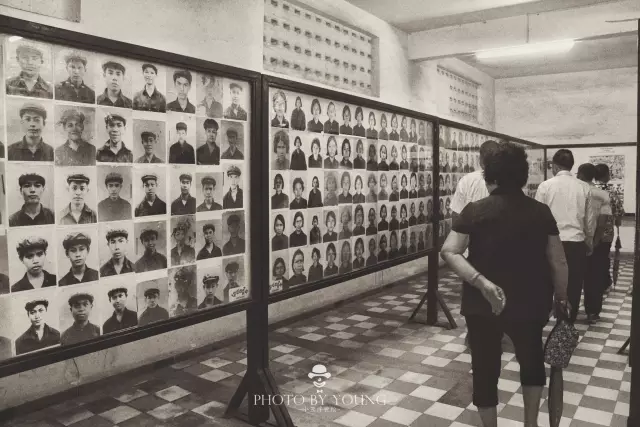 S21是全国最大的拘禁与拷打中心。 1975----1978年的4个年头里,超过2万人在这里被拘禁和拷打,有些人就死在这里,更多的人被送往钟屋杀人场被有计划地处决。 红色高棉变态地乐于展示其残暴和野蛮,S21对每一位新进的囚犯都要照相,甚至在他们受刑的前后都要照相,丝毫不在意将来会成为罪证。  ▲S-21集中营受害者们